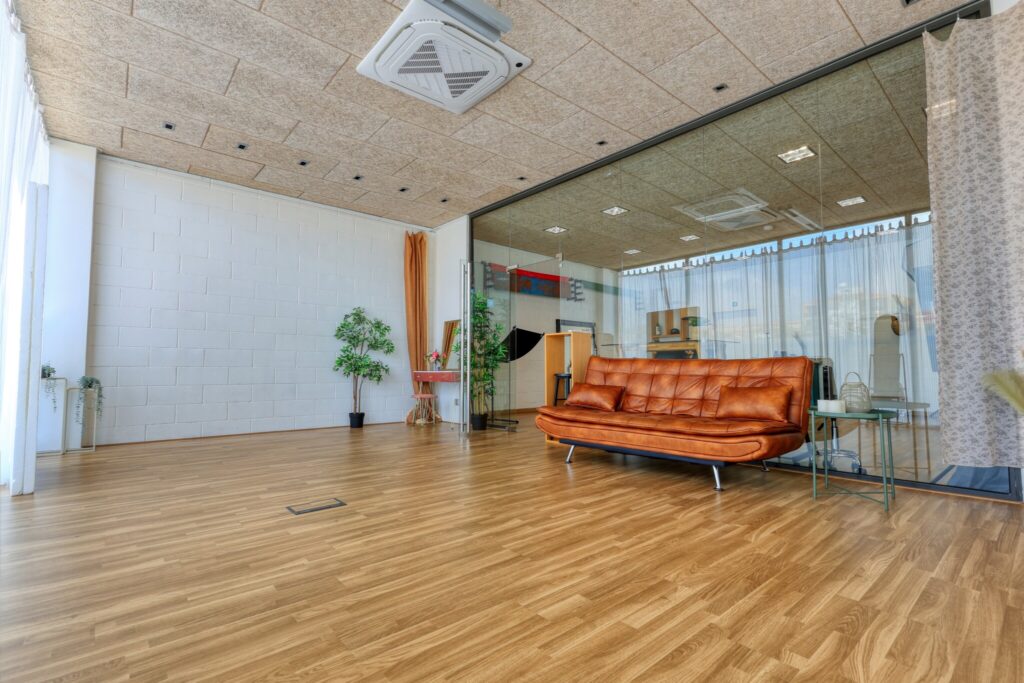 Sala versátil de 40m2 con Luz Indirecta.Tendrás una preciosa luz natural muy estable debido a su orientación nord oeste. Podrás disfrutar durante muchas horas del día de esta luz. De Marzo a Octubre tenemos luz directa del sol en el atardecer. 🌅 Puedes calcular la posición del sol aquí.