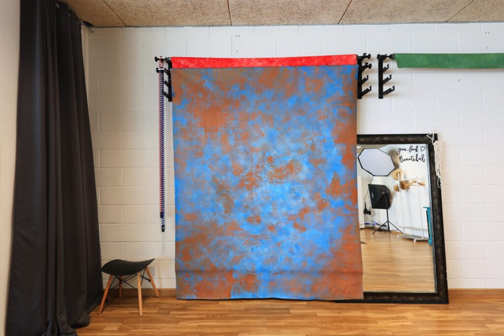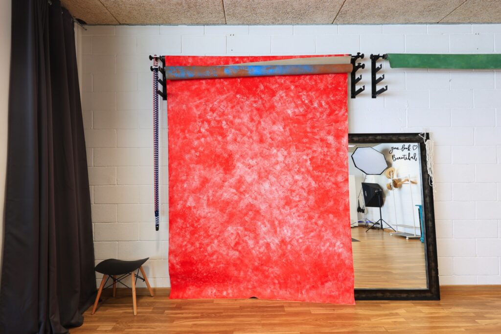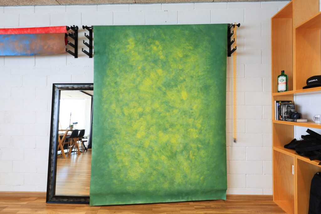 Esta sala de 50m2 se pueden poner cortinas opacas para quedar en total oscuridad. Dispone de fondos de 3×6 metros de vinilo blanco y negro. Croma de 2.7x6m, fondos pintados a mano, marrón, verde, azul y rojo. Espejo grande. Varios modificadores y luces detallados previamente. Hay enchufes en el suelo y en cada esquina. Dispone de equipo de música.